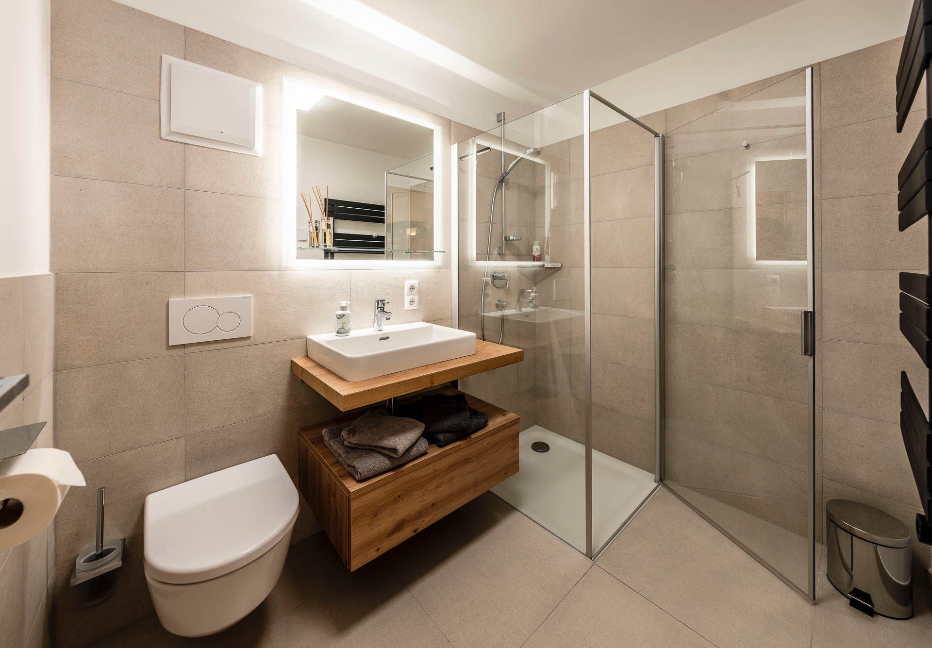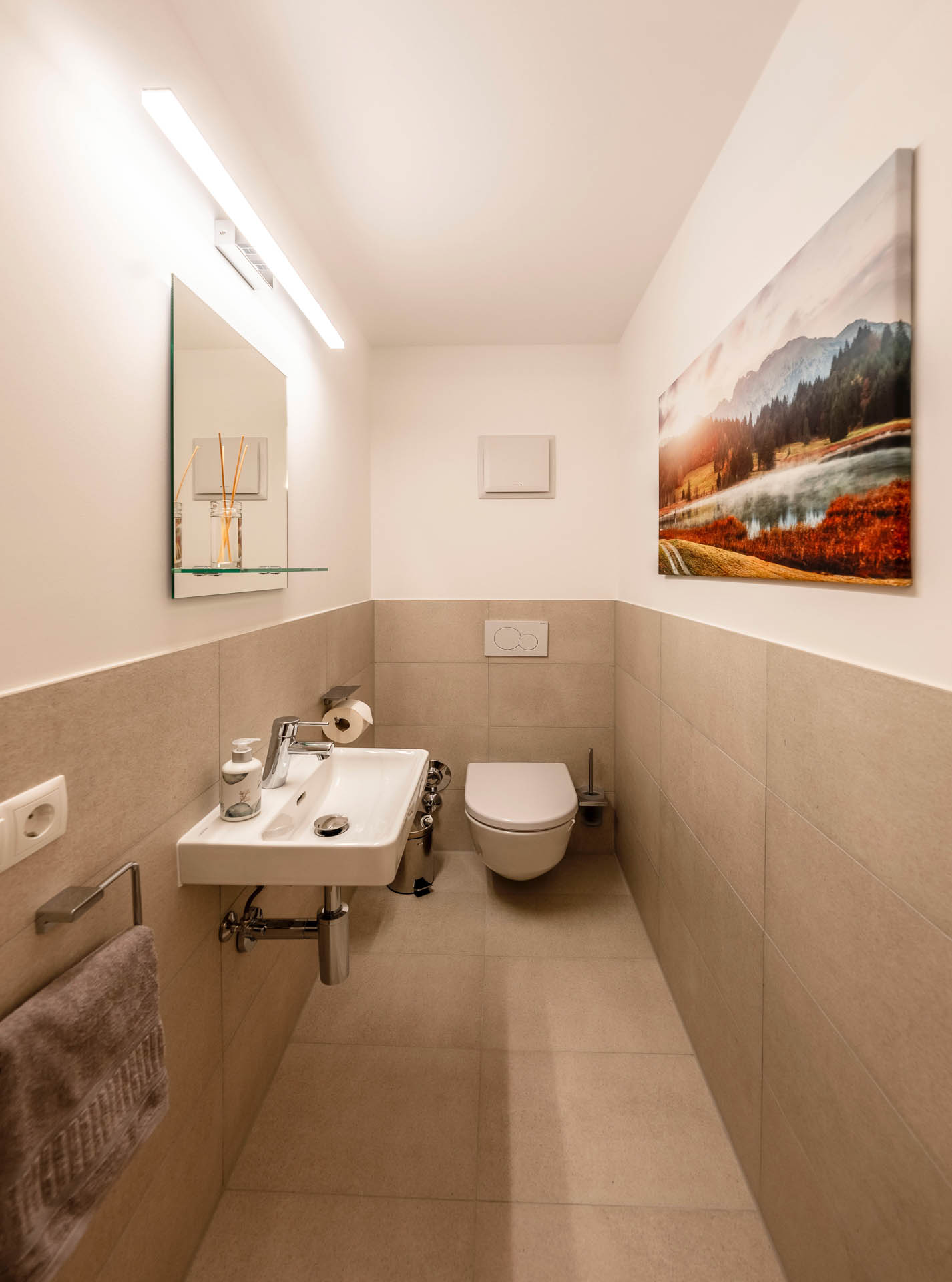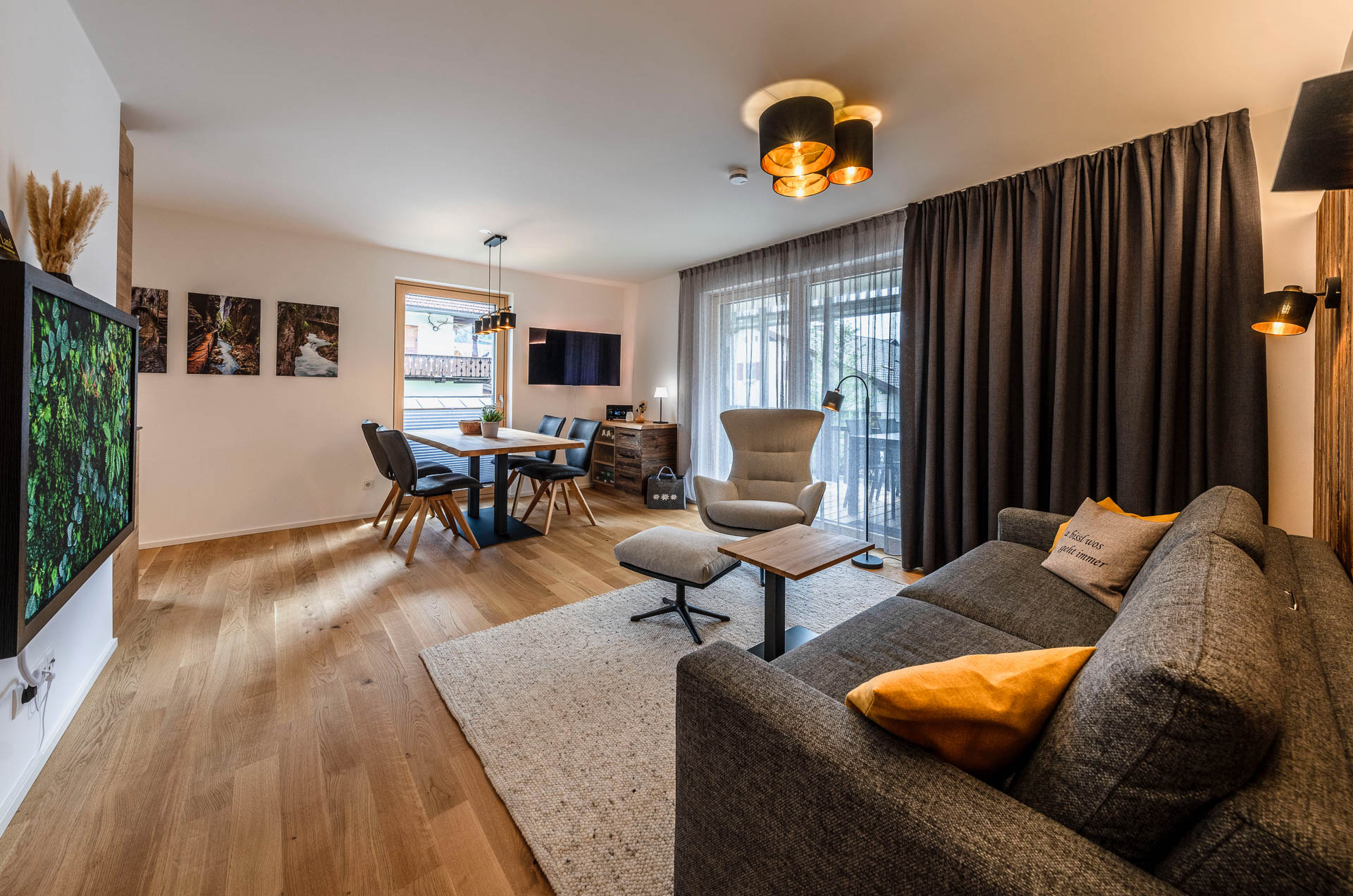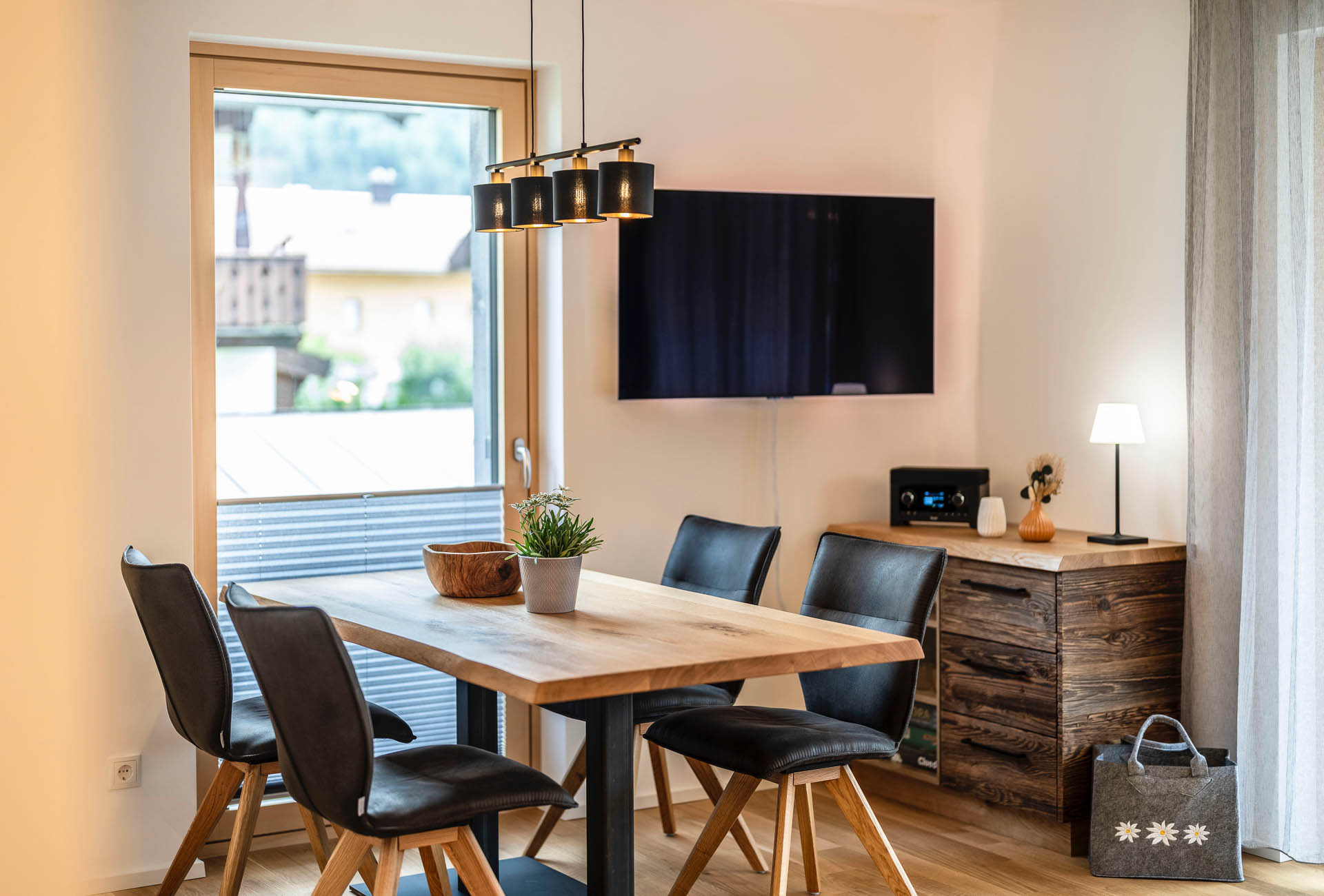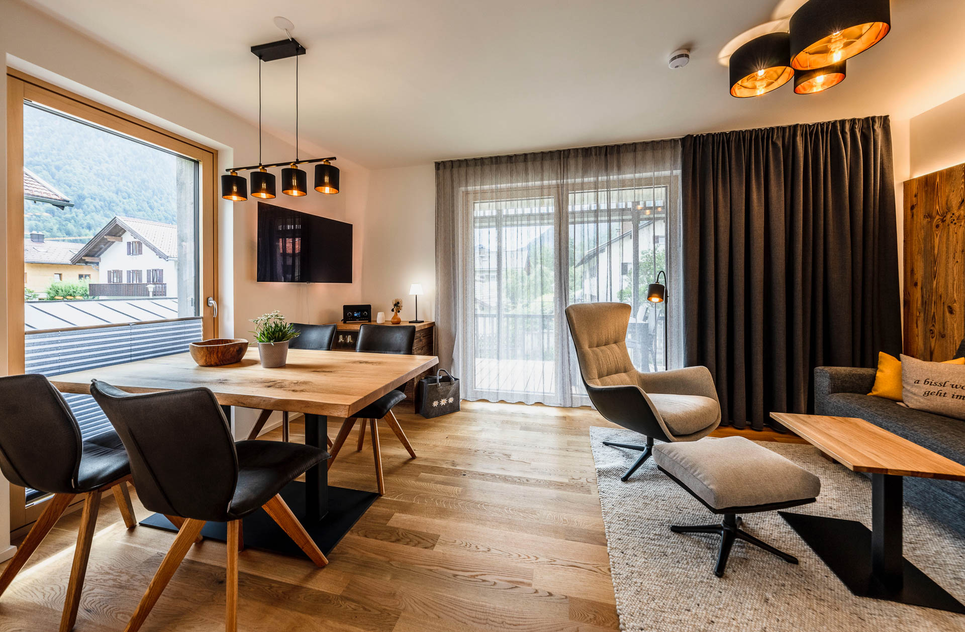 As soon as you enter the building, which was built according to the latest ecological and technical standards, you will feel the sustainability of the modern architecture; the interior of the flat is characterised by design, functionality and materials from traditional Alpine life. If you are travelling by electric car, there are several charging points in the immediate vicinity. Guests travelling by train are rewarded with a range of local bus and regional train connections, car sharing and rental bikes at the train station. You can easily reach many destinations such as bakeries, supermarkets, chemists and other shops for everyday needs on foot. Most excursion destinations can be reached on foot and also by public transport by bus and train.
