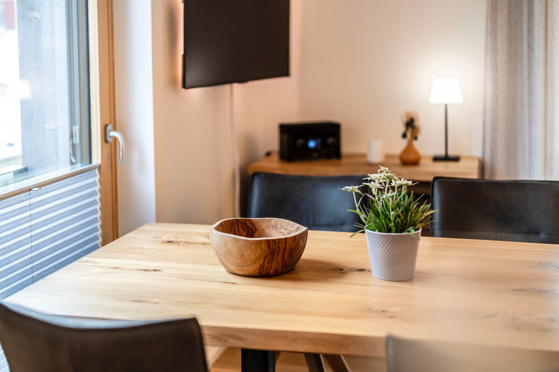 Our lovingly furnished Alpine-style holiday apartment in the center of Mittenwald is the ideal holiday destination for nature lovers, active travelers, culture enthusiasts, and those seeking relaxation. Viererspitz 1 includes a modern kitchen, a stylish bedroom, a fully equipped workspace, an open living room with a dining area, and a modern bathroom. From the quietly located apartment, you have a fascinating view of the western Karwendel mountains. What more could you need to end a beautiful vacation day?